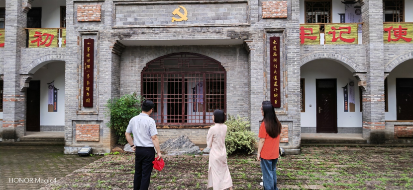 实践团还参观了莲花艺术中心。莲花艺术中心是当地为引进创新人才,进一步助力美丽乡村的文化建设,持续服务乡村振兴发展的实践成果。书法家、画家、摄影家以及文化、教育工作者,以村民共建、在地教育、艺术回归等方式,营造乡村认同,助力乡村发展。放眼望去,整个郝堂村仿佛包围在一大片荷塘里,淡雅的花香,翠绿的山岗,一幢幢青砖石瓦的现代建筑和历史遗存的茅草土坯小屋,古朴民俗的农家小院,散落在村庄的各个角落。树木、青草、野花,一条清澈溪水穿村而过,相映成趣,组合成一幅美丽的乡村画卷。
